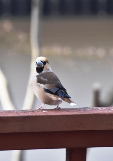 全長18センチほど。蝋嘴鳥(ろうしょうちょう)という異称があるように、この嘴(くちばし)が特徴だそうです。 |
