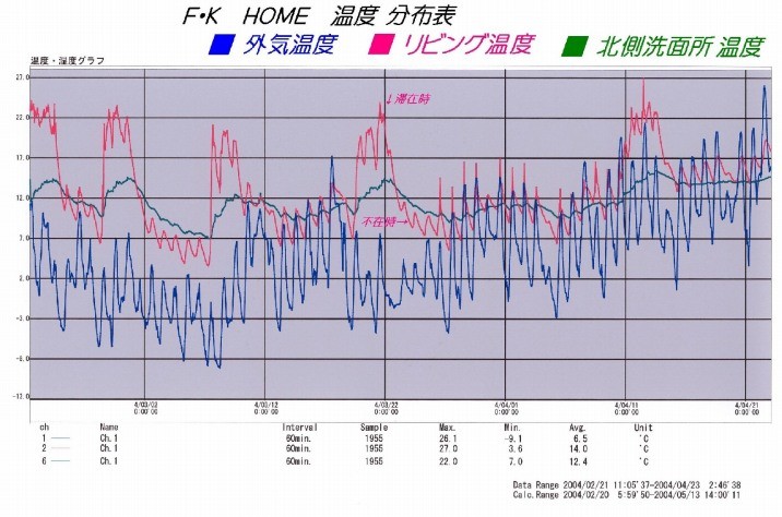 【書類名】 実用新案登録願 【整理番号】 U4370 【特記事項】 実用新案法第10条第1項の規定による実用新案登録出願 【提出日】 平成19年 3月15 【あて先】 特許庁長官殿 【原出願の表示】 【出願番号】 特願2004−192325号 【出願日】 平成16年6月2日 【国際特許分類】 E04B 01/74 E04B 01/78 【考案者】 【住所又は居所】 東京都狛江市中和泉3−25−15 【氏名又は名称】 松 田 照 美 【実用新案登録出願人】 【識別番号】 504252330 【住所又は居所】 東京都狛江市中和泉3−25−15 【氏名又は名称】 松 田 照 美 【代理人】 【識別番号】 100072224 【弁理士】 【氏名又は名称】 朝 倉 正 幸 【手数料の表示】 【納付方法】 予納 【予納台帳番号】 056948 【予納金額】 41000 【提出物件の目録】 【物件名】 明細書 【物件名】 図面 【物件名】 要約書 【書類名】 実用新案登録請求の範囲 【請求項1】 住宅基礎構築部分の地表から掘り下げた位置にべた基礎を造成し、べた基礎周囲に造成される基礎立ち上がりを地表上に延ばして地下壁を形成させて上部構造を構築し、地下基礎内を外断熱構造にすると共に、地下室内に非燃焼形の蓄熱式電気暖房器を設置して暖気を上部建屋内に導いて各室を暖房することにより人が不在の厳冬期であっても水道水抜きを不要としたことを特徴とする建築物。 【請求項2】 前記地下基礎内に水道管配管を導いたのち建物内壁または床下を経由して上屋室内に導いてなる請求項1に記載の建築物。 【書類名】 明細書 【考案の名称】 建築物 【考案の詳細な説明】 【0001】 【技術分野】 本考案は、住宅基礎構築部分の地表から掘り下げて構築した地下基礎内に非燃焼形の蓄熱式電気暖房装置を設けて暖気を上部建屋内に導くことにより厳冬期不在中に水道水抜きを不要として寒冷地に適するようにした建物物に関する。 【0002】 【背景技術】 冬季の外気温が氷点下に達する寒冷地における一般住宅などの建築物では、氷結を防止するため水回りの施工に細心の注意が必要であった。例えば、水(水道)の取出しを凍結深度より深いところから行い、外部に露出する配管部分に凍結防止ヒータを巻き加温して水道管の凍結を防ぐと共に、未使用時には水抜きを行うことが行われている。また、凍結防止ヒータを使用しない場合には常時水道を流すことによって水道管の凍結を防いでいた。 【考案が解決しようとする課題】 【0003】 上記のごとき建築物では、冬季稼動にかかる電気料金は、非寒冷地の住宅に比べて多大の出費となっていた。また、電気料金節約を節約するために、外出や不在の度に水抜きを行なうのは多大の手間がかかるばかりか、凍結防止ヒータのスイッチを切ったものの水抜きを忘れるといった事態を生じる。この場合には水道管の破裂によって建物内に水浸しになるなどの被害を蒙る。常時水道を流す方式では、限られた水資源の浪費となるばかりでなく、マイナス20℃を越える極低温下での凍結は免れないし、従来の一般住宅や山荘、別荘での暖房機では外出、外泊時等には、暖房機を稼動させることができないために、建物の室内は外気温度と同じになり、氷点下にならざるを得ず、家庭電化製品ならびに液晶テレビ等の劣化が激しく、また蛇口のゴムパキン等のゴム製品の劣化も著しいものがあった。 本考案は、上記のごとき従来の問題点を解決するものであり、水道管用の凍結防止ヒータが不要となり、さらに厳冬期の外出や長期不在の際にも室温が氷点下に至らないようにした建築物を提供することを目的としている。すなわち、天候、気温の変化に関わらず、とりわけ外気温が氷点下なる厳冬期でも、火力を使用せずに室内を常温またはその付近に維持することができる建築物を提供するものである。 【0004】 【課題を解決するための手段】 上記目的を達成するため、本考案の請求項1は、住宅基礎構築部分の地表から掘り下げた位置にべた基礎を造成し、べた基礎周囲に造成される基礎立ち上がりを地表上に延ばして基礎とし、そのうえに上部構造を構築し、地下壁で囲まれた基礎内を外断熱構造にすると共に、地下室内に非燃焼形の蓄熱式電気暖房器を設置して暖気を上部建屋内に導いて各室を暖房することにより厳冬期の不在中にも水道水抜きを不要としたことを特徴とする建築物である。請求項2は、前記地下室内に水道管配管を導いたのち建物内壁または床下を経由して室内に導いてなる請求項1に記載の建築物である。 【0005】 【考案の効果】 上記のように、本考案によれば、建物内は外断熱処理した基礎と、基礎に囲まれた部位に設置した蓄熱式電気暖房器との相乗効果によって室内は厳冬期に氷点下に達することがなく、蓄熱式電気暖房器で暖められた水道配管を通って上屋内に送水できる。また、基礎内に設置された蓄熱式電気暖房器の保温効果により、温められた水道水が送水されるため建物内に達した水道配管内の水抜きが不要となる。 【0006】 【考案を実施するための最良の形態】 次