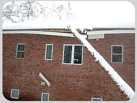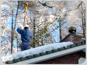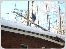 | 積雪は30pを超えそうな勢いで重い雪質の大きな粒の雪がひっきりなしに降ってきていて視界も良くありません。そしてなんと我が家の入り口の付近の木々が積もった雪の重みで枝が撓って来て車の走行に今にも支障が出そうでした。 そこを迂回し何とかお山の家に到着した頃には日も暮れ始め、降り続く雪にロマンチックな感傷など抱いている状態ではなく、このまま降り続けば道路に木々が倒れてきて車の出入りが出来なくなりそうで心配でした。 そこで早速管理事務所に電話を掛けると緊迫した事務所内の雰囲気が伝わって来ました。 「今晩一晩はこのまま降り続きそうなので、緊急な用事がない場合は東京へ引き返した方がいいです。避難してください」との一言にこれはただ事でないと感じ始めました。 そこですでに現地入りしていた友人に携帯電話で連絡を取り、状況について随時相互に連絡を取り合いながらとりあえず明日のクリスマスパーティーの決行の有無について判断していきましょうということになったのでした。 そのお宅は富士見高原の冬をにすでに6年間経験しており大雪対策についてはある程度経験があったのでとても心強く感じられたのです。 心配だったのは降り続く湿った大雪のために道路が寸断されるのではないかということと、我が家の入り口付近の木々が倒れかかっており車を避難させる必要があるということでした。 その時はすでに40p近く積もっていて車の走行にも支障をきたしていました。いくら4輪駆動のスタッドレスとはいえ走行には限界があります。 除雪車が道筋を確保してくれるまでとりあえず倒木の恐れがあった場所から避難させ幹線道路脇に車を止めに出かけることにしました。するとあたりはもうすでに薄暗く雪明かりのみが頼りのなんとも心許ない状況でした。 第 5 回 赤松の大木が降ってきた・・・ そして車を止めた幹線道路から我が家まで歩いて戻る最中その事件は起こりました。 何となく微かに叫び声が聞こえたのです。でもそんなに気にとめていませんでした。 ですので始めは何の音なのか、声なのか分からず、我が家までの僅かですが道のりを大雪にまみれながら歩いていると、再びその声が聞こえたのです。 今回のは、はっきりとした叫び声でした。 家にちかづく程にその叫び声は大きくなり、ただ事ではないことが分かり始めていました。 家の前まで戻ってくると大雪に埋もれた我が家がひっそりと建っていて室内の明かりが周囲を照らし何ともロマンチック。 なかなかいい感じと眺めていると、「家に雷が落ちた!地震があった!爆発音があり家が揺れた!」と恐怖の叫び声が妻から発せられ、大変なことが起こっているとあわてふためいておりました。 ところが薄明かりの中我が家を見てもいつもの風景で、変わった様子はありませんでした。 でもなんかちょっと様子が変と感じたのは屋根から赤松が生えていたことです。裏に回って見てみるとこれは大変です。お隣の敷地の直径40p高さ30m程の赤松が地上10m程のところから折れ、我が家の屋根に突き刺さるように乗っかっていました。 落葉しない赤松の枝に積もった雪の重みで直径40pもの大木が折れたのでした。屋根瓦や木々が散乱し被害状況は全くつかめません。 |