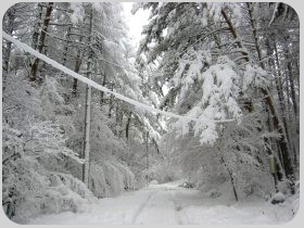 【 体験して分かる冬の別荘生活とは 】 さて、今回おくる3題材「湿った大雪が降ると・赤松の大木が降ってきた・停電は恐ろしい」は2002年の冬12月の実際の出来事です。 第 4 回 湿った大雪が降ると・・・ この日は朝から東京も寒くどんより曇って今にも雨か雪が降りそうでした。今回のお山行きの目的はクリスマスパーティーの開催とその準備でした。 調布インターチェンジから中央高速に乗り八王子付近からは雪が降り始めていました。いわゆるボタン雪と呼ばれる大きな粒の雪が舞い始めていました。 現地の友人から入った携帯電話情報によると、八ヶ岳富士見高原ではあっという間に20pの積雪で車の走行にも支障をきたしており、お山に来るなら早い内に来た方が無難であるとの連絡が来ました。 それでもその時はまだ緊迫感など全くなくスキー場へ出かける観光客気分でお山に向い雪の降る中央高速を快調なペースで走っていました。 富士見高原への出口、小淵沢インターへ近づくと流石に積雪量も多くそれでも幹線道路はすでに除雪車が入り走行には問題ありませんでした。 ですがここで気が付いたのはいつもと違う雪景色です。 それは湿った重い雪質のため木々が折れ曲がったり、枝が垂れ下がっておりただ事ではない森の風景になっていました。 富士見高原の別荘地へ上がっていくと更に景色は一変していました。 |