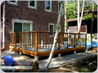 | 実に誠意的な対応で素人には全く分からない事象にもかかわらず、正直にデッキ材の不具合を指摘し、よりよいウッドデッキに作り替えて頂きました。 さらに問題であったのが、駐車場の外壁です。 当初は壁塗り風味を感じさせるために「ジョリパット」施工を行っていました。 ところが施工2年目になって下地の目地付近からジョリパット内部に気泡ができ、気温の上昇(梅雨から夏へかけて)とともに気泡が膨らみ南壁を中心に西側・北側と広がっていきました。問題の重要性から工務店さんとしても即対応していただき、ジョリパットメーカーと共に原因の究明と再発防止の検討を行い再施工することになりました。 |