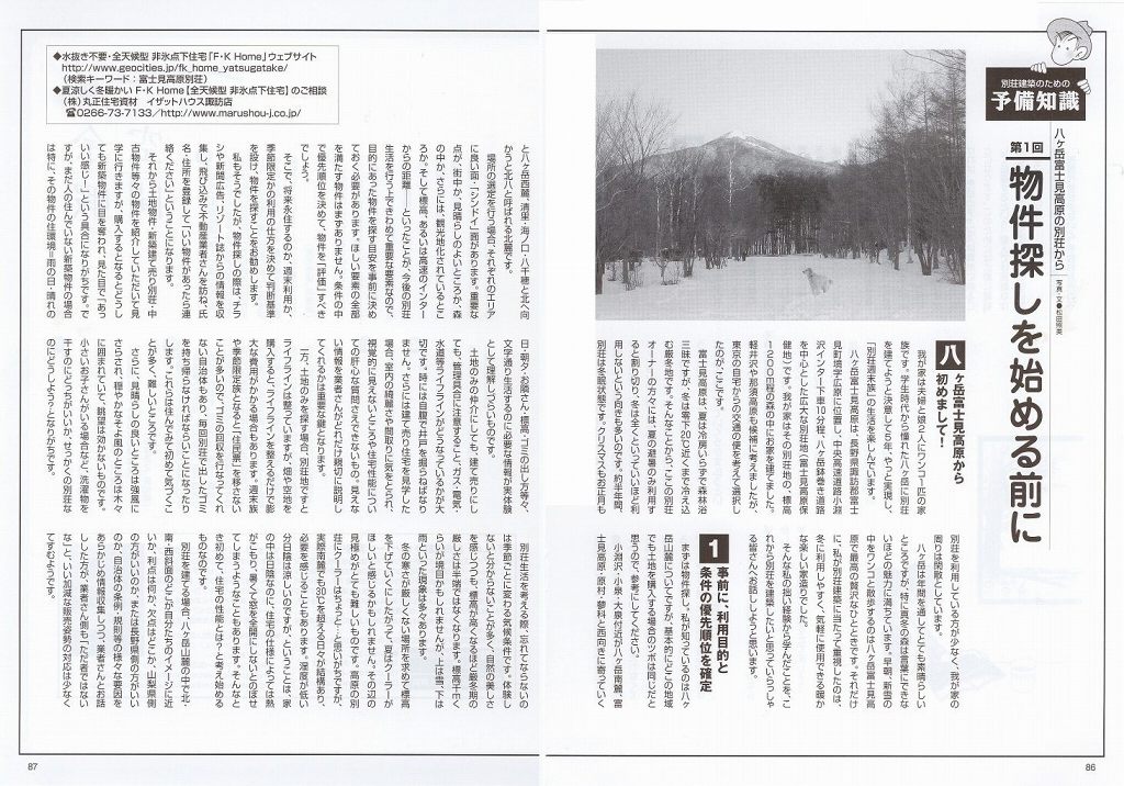 月刊リゾート物件情報 2月号 別荘建築のための予備知識 第1回 連載記事