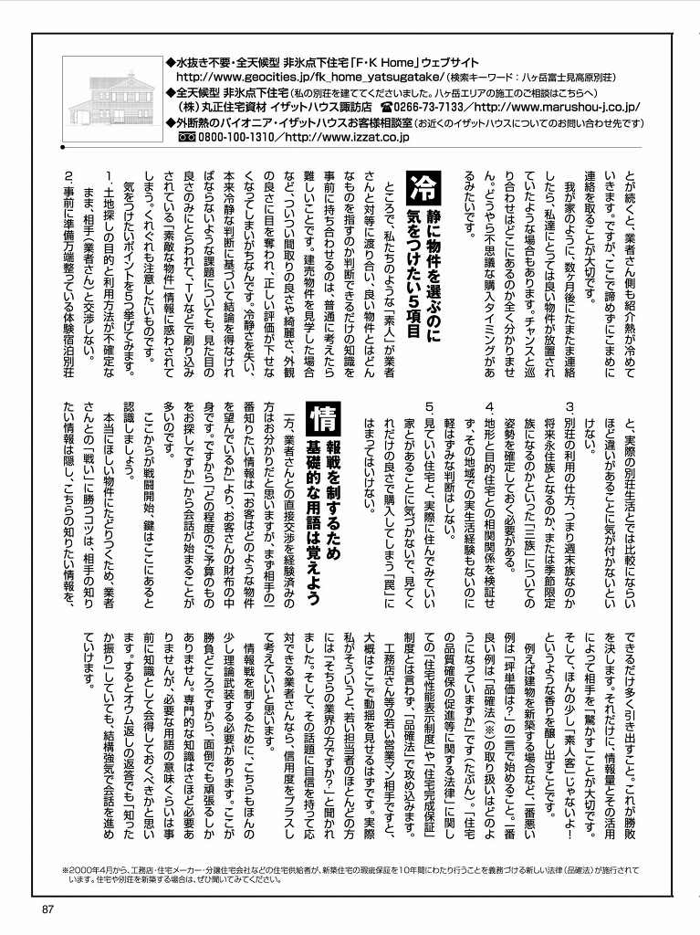 月刊リゾート物件情報 4月号 別荘建築のための予備知識 第3回 連載記事 (左ページ)